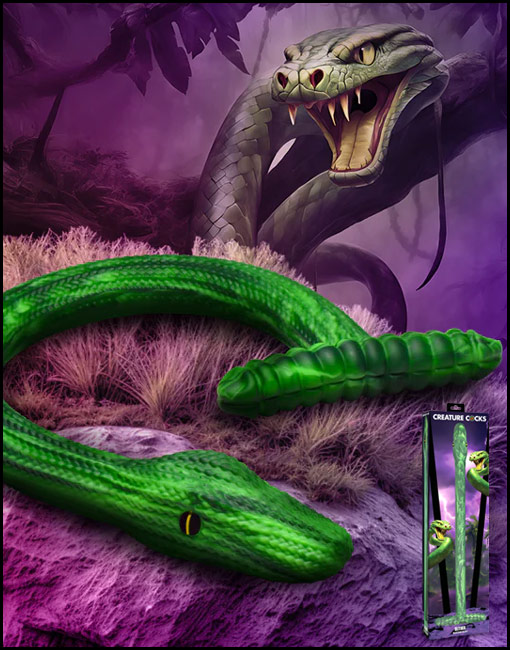 Discover untamed pleasure with the Slither Silicone Dildo! This striking bright green serpent invites you to explore the depths of your own wilderness! The unique design features a round, tapered nose and a bulging head, leading to a long, textured body for constant stimulation as you encourage the snake to slither in deeper. The ridged, easy-grip handle forms a T-shape at the base, enhancing safety and control during use and creating a stopping point in your adventures that works better than a flanged base. Crafted from premium quality silicone, this toy is compatible exclusively with water-based and oil-based lubricants. Embark on an adventurous journey and let this wild snake entangle your senses with mind-blowing satisfaction!