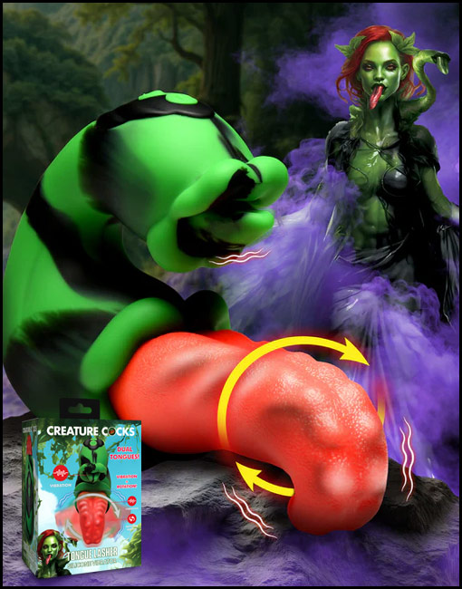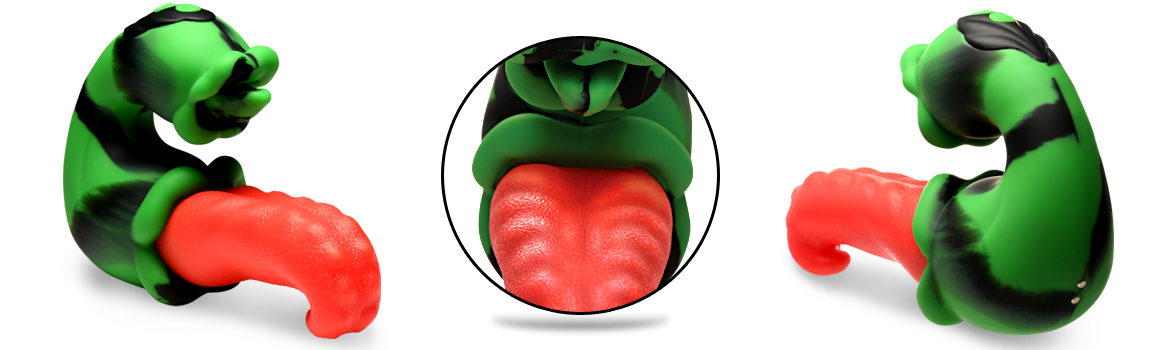 Lose yourself in a paradise of pleasure with the Tongue Lasher Silicone Vibrator! This enchanting, plant-inspired device promises to awaken your deepest desires. The seductive black, green and red curved vibrator boasts dual pleasure capabilities: one mouth to tease your clit and another with a bright red, textured tongue ready to explore within. Customize your ecstasy with 3 speeds and 7 tantalizing clitoral vibration and simultaneous vibration and tongue rotation. The tongue's squishy yet firm silicone offers both comfort and extra stimulation, ensuring an exquisite experience. Perfect for a steamy shower rendezvous, its IPX6 waterproof design handles wet sessions without a hitch, and it's USB rechargeable for endless fun.