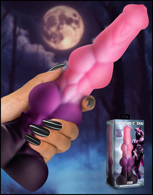 Let loose with the distinctive Lycan Werewolf dildo! Highlighted by its massive size, its striking sculpted knots, uniquely shaped mushroom tip, and bold, defined balls, this design brings every detail to life. Crafted from premium silicone, it’s both gentle to the touch and made to last. The robust suction cup base allows for a steady, hands-free experience, so you can fully immerse yourself. Flexible and strong, it effortlessly fits your every curve for a comfortable and thrilling session. Your next adventure starts now!
