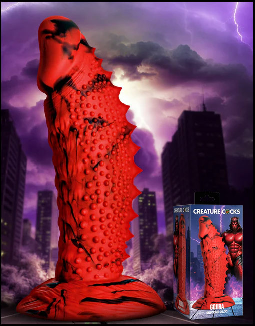 Ready to unleash your untamed desires? Meet the Gojira dildo, the answer to awakening your wildest fantasies. With its daring, thick design enriched by thrilling textures like spikes, bumps, and ridges, this dong takes pleasure to another level. Its rounded, tapered head ensures a smooth experience, while the robust silicone construction adapts effortlessly to every mood. Whether you prefer solo moments using the suction cup base on any flat surface or partnering up with your favorite harness, it’s your key to next-level excitement! Indulge in your monster fantasies with this massive Gojira dildo!