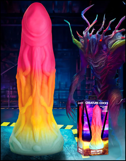 They always appear normal at first, camouflaging themselves in whatever skin the species they are around wears. They appeared to you as human, but there was something off about them; it was the eyes, they were unnaturally yellow-gold and caught the light like a nocturnal animal. By the time you noticed, it was already too late. They'd asked you for a long stroll in the brisk night air and you both strolled through a local garden just outside the party where you'd met. It was risqué, of course, to be outside at night with a strange man. You felt a hunger that intoxicated you… or was it the wine? As the shadows fell over you both, you started to feel uneasy. Was it the dim light or did this fellow's shape change? You convinced yourself you'd had too much to drink and that there was no way you could possibly be seeing a… monster. But as you asked to return to the party, he pulled you into the dark and covered your mouth before you could scream! His shape changed before you! He was part lizard and lion, part animal and man, and multiple beasts erupted from his ever-changing and morphing skin! Beneath his cloak was a writhing, multi-colored shaft and as he pushed you against the nearest vine-covered cement wall your fear turned into ecstasy as his very shaft began to writhe and change inside of you, fitting every shape and curve in ways you'd never felt before!