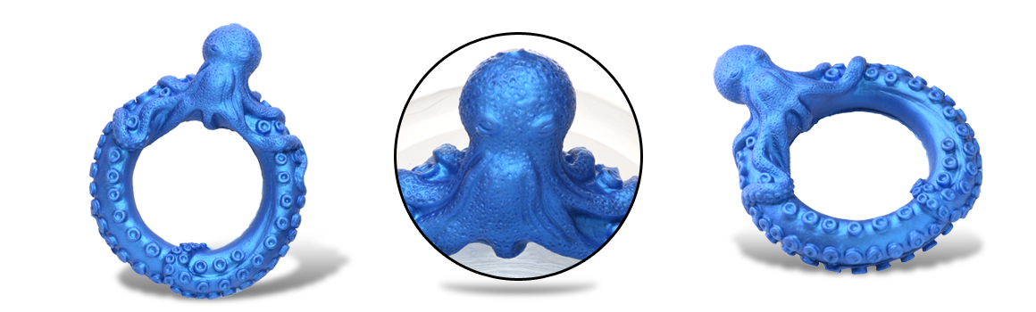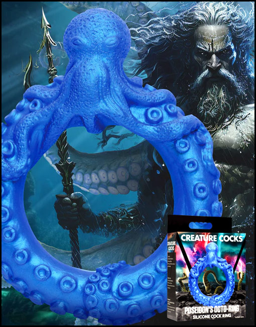 You're ready to plunge deep into your partner's depths. As you slide on this magic ring retrieved from the depths of the ocean, you know that your rod will not only be adorned with one of Poseidon's powerful totems, it will have the extra power of this tentacled creature that grips your rod and holds on while you plunge into a new kind of watery depth!