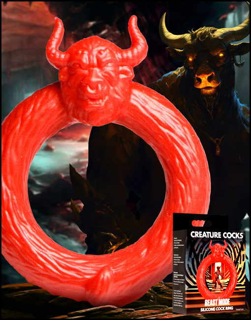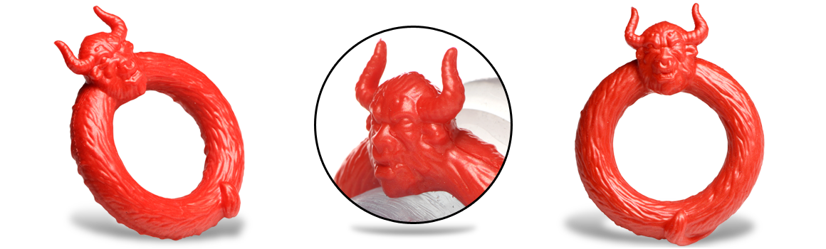 Give into your wild desires and let your Beast out with this Beast Mode c-ring!! Made out of super stretchy and plush silicone that is phthalate-free and body-safe, the bright red color evokes the rage of the bull as if a matador has waved his red flag in front of it! The beast's head and horns sit above your shaft, ready to charge! It can fit over the shaft along or also be stretched to fit around the shaft and under the balls, too! It can enhance your playtime, increase the intensity of climax, and help you stay rigid for longer! Combine this with any fantasy roleplay or creative scene a little more fun!