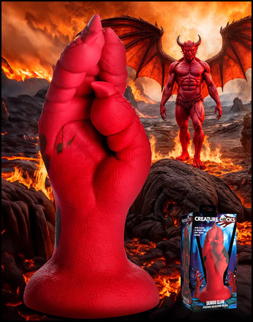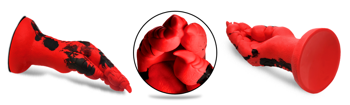 Want to get fisted by a demon, dragon, or other mythical creature? This Creature Cocks Demon Claw is the perfect addition to your kinky collection! This red hand has scales on it, long claws, and meaty fingers! Enjoy the unique textures as you take this clawed hand inside! The wide flanged base makes it safe for backdoor play as well as front door entry. The base also has a strong suction-cup for hands-free riding! Combine it with a compatible strap on harness for couple's roleplay or pegging. Made out of squishy, firm, flexible material it can get into every space, no matter how tight! Enjoy the premium quality silicone that is body-safe and phthalate-free. Play with kinky cosplay, fantasy roleplay, and any sci-fi or horror scene you're dreaming up! After play, wash with warm water and mild soap, then rinse and spray with a toy cleaner before patting dry. Store in a cool, dark place out of direct sunlight. Use only with water-based lubricants for best results.