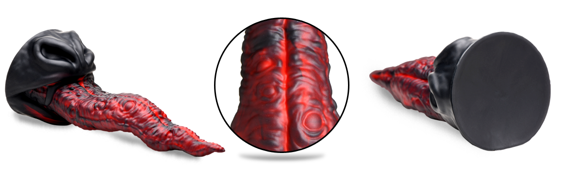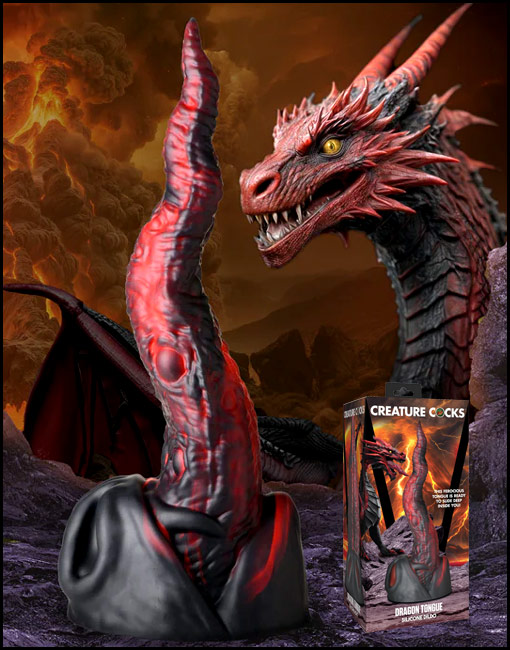 Refuse to settle for the ordinary. This Dragon Tongue is searching, hungry, and ready to deeply explore your cavern of gold. Made out of premium, silky smooth, phthalate-free silicone it has a squishy outside and firm, flexible core that is body-safe. Only use water-based lubricants for best results. The strong, suction-cup base lets you ride hands-free when it's placed on any flat surface. It's harness-compatible so you can enjoy it with a partner or attach the harness to a chair or bench. Enjoy your kinky cosplay, fantasy roleplay, and self-pleasure with this fantasy dildo! After play, wash with warm water and mild soap then spray with a toy cleaner and let it air dry.