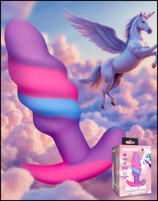 Introducing the delightful Unicorn Swirl Butt Plug, designed to transform your intimate moments into magical memories! The rounded head ensures a smooth entry, while the unique swirling ridge offers stimulating massages to your most sensitive spots. Crafted from top-quality, body-safe, silky silicone, this butt plug is both luxurious and safe. It’s designed with a slim, wide base to prevent slipping in too far, making it safe and comfortable for longer wear. With an enchanting and eye-catching mix of purple, pink, and blue, this unicorn-inspired plug is a whimsical addition to your collection. Enjoy a magical journey with every use.